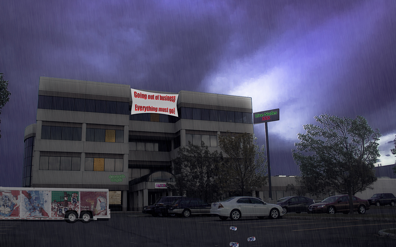 I was asked to take several pictures of any location using a DSLR camera. Using these pictures, I had to evoke opposite moods using RAW and composition within Photoshop. I used an office building on New York State Route 252 (a.k.a. West Henrietta Road). Using Photoshop technologies, I altered the images to a point where one is extremely happy and the other extremely depressing.